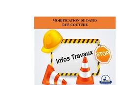 ALERTE - NOUVEAU CHANGEMENT DE DATES - MISE À JOUR 9 OCTOBRE: Travaux rue Couture : du 24 septembre au 21 octobre 2025. - DÉTAILS PAGE INFO CITOYEN