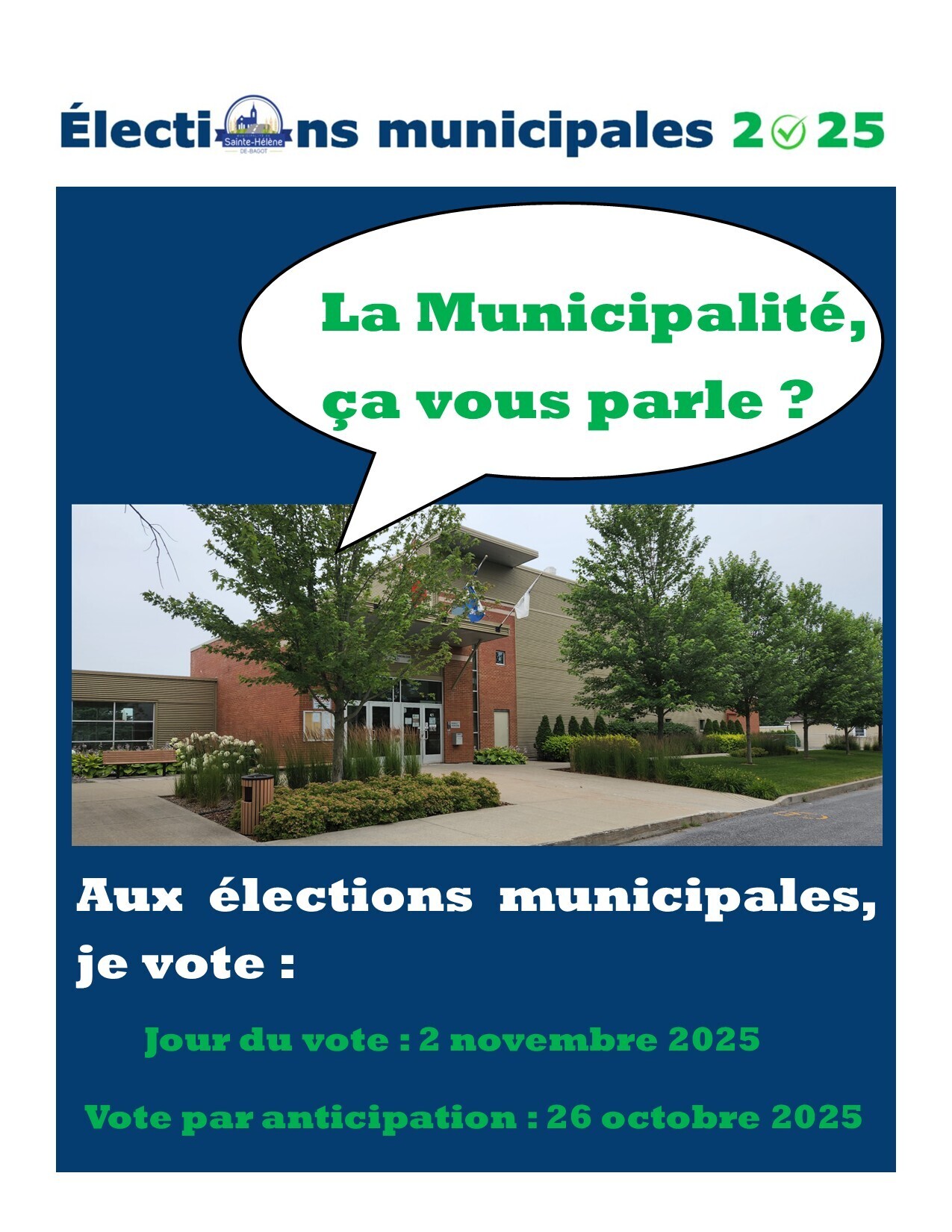 La Municipalité de Sainte-Hélène-de-Bagot sera en élections pour le poste de conseiller numéro 6. Voir l'avis de scrutin :
