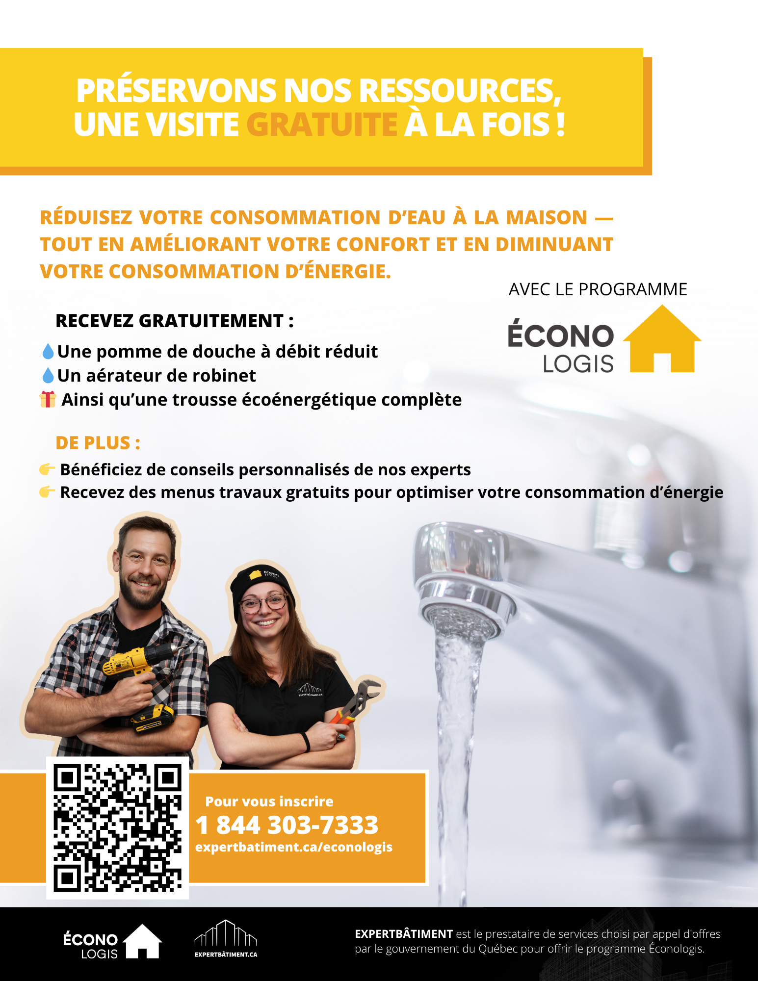 Ce service est offert GRATUITEMENT par le mandataire ExpertBâtiment : 1‑844‑303‑7333.