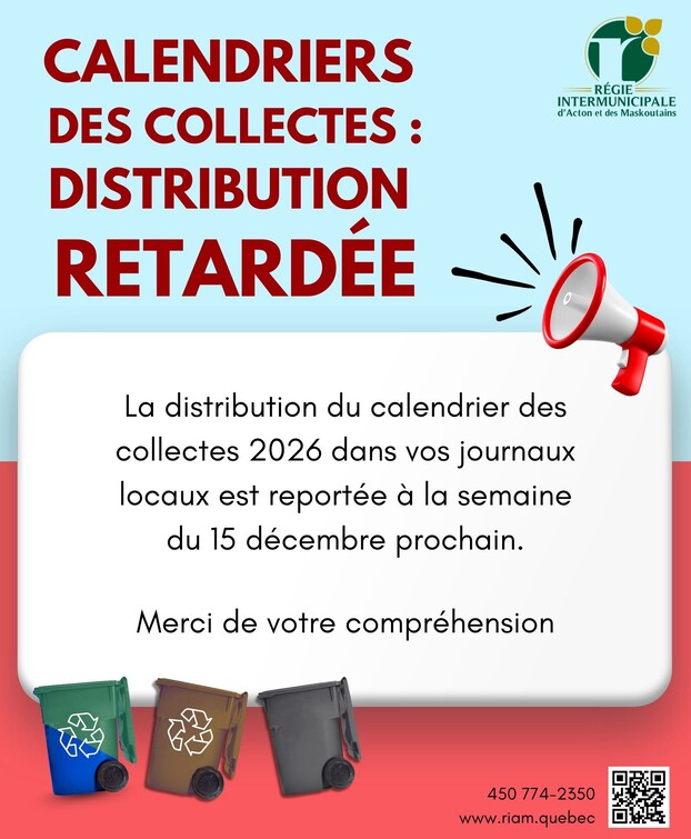 En ligne, sur le site Internet de la Municipalité au www.saintehelenedebagot.com dans la semaine du 15 décembre 2025, sous l'onglet Environnement / Matières résiduelles et installations septiques.