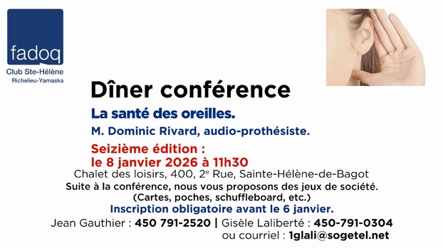 FADOQ - Dîner conférence le 8 janvier 2026 sur la santé des oreilles