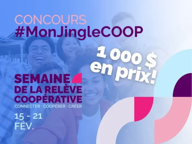 S'adressant aux personnes âgées de 18 ans et plus, ce concours sollicite la créativité! Crée ton jingle, fais entendre ta voix, fais voir tes talents créatifs et cours la chance de voir ton contenu promotionnel représenter la relève coopérative!
