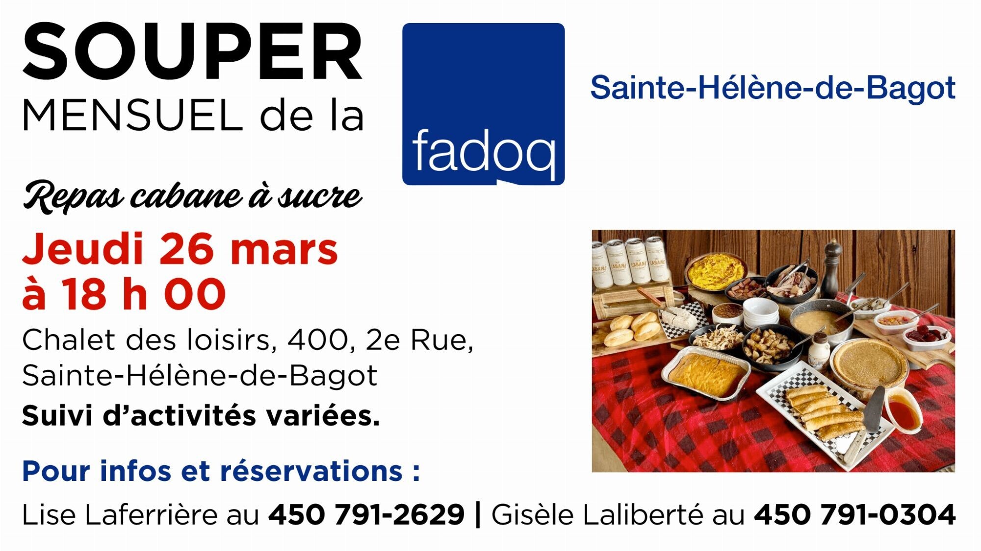 FADOQ - Souper le 26 mars 2026